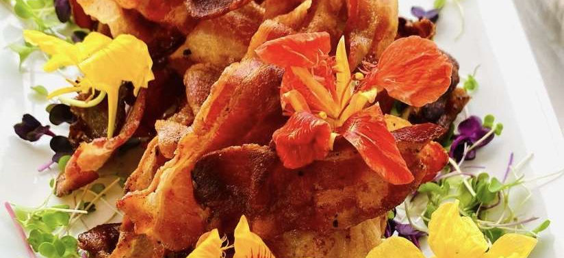 Crème fraiche infused with parmesan and feta, tomato concasse, tarragon leaves, micro greens
